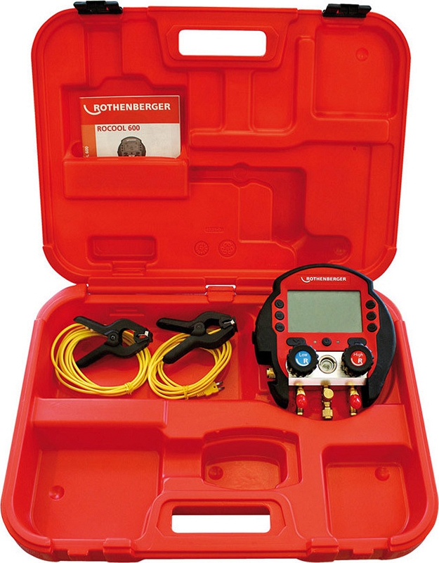 Электронный цифровой манометрический коллектор Rothenberger Rocool 600, 2 температурные клеммы, чемодан