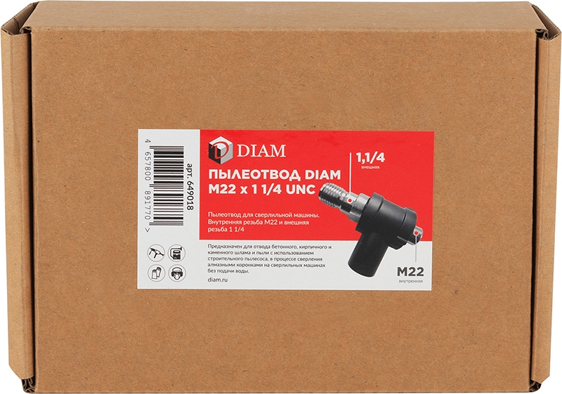 Цена и технические характеристики пылеотвода для алмазного бурения отверстий Diam М22 мама-1 1/4 UNC папа: